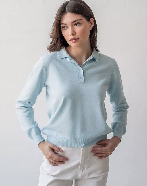 K13012 Джемпер поло (вязаный трикотаж) ГОЛУБОЙ