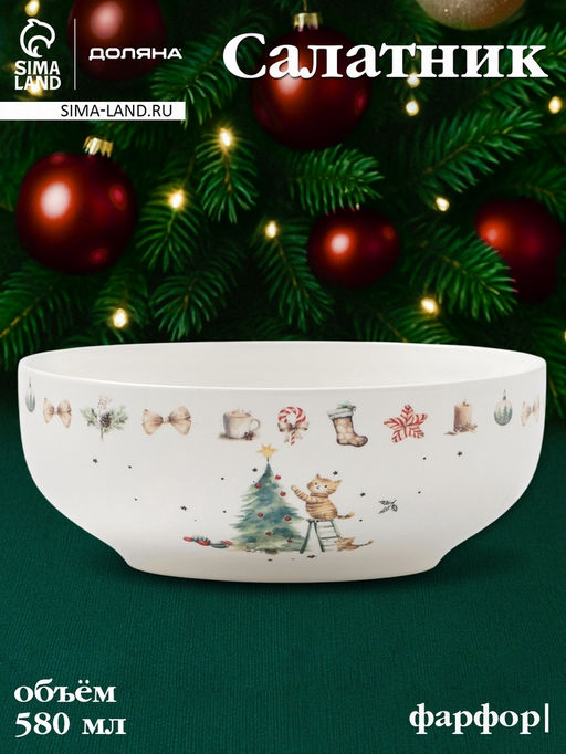 • Салатник новогодний Доляна «Волшебный праздник», 580 мл, 15.5×6 см, фарфор, белый