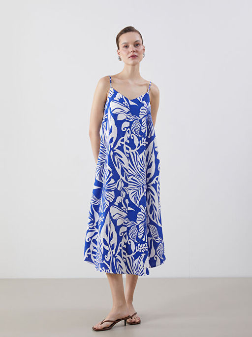 V Yaka ?i?ekli Ask?l? A Kesim Elbise