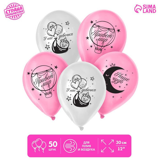 Воздушные шары латексные 12" «С рождением девочки», 50 шт.