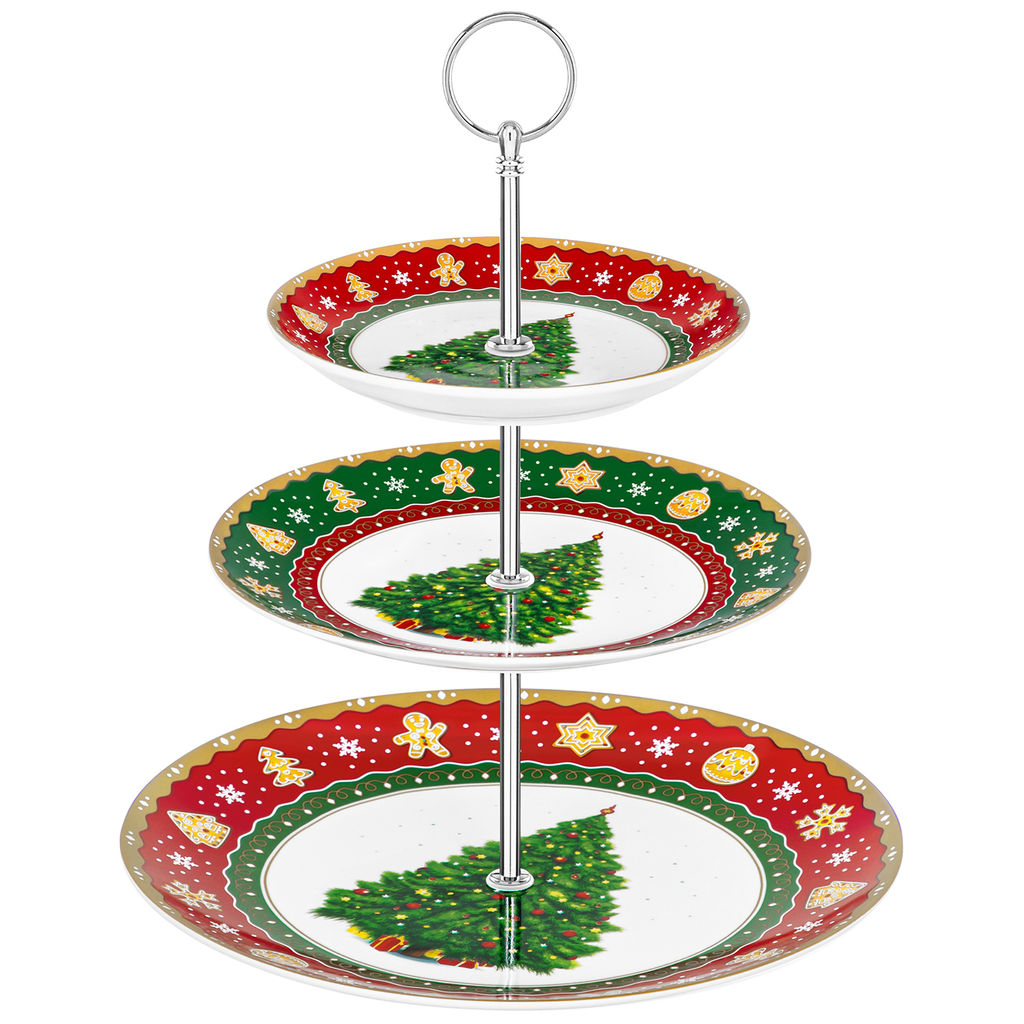• Блюдо-этажерка 3-х ярусная 27*27*34 см "Новогодняя елка" NEW BONE CHINA
