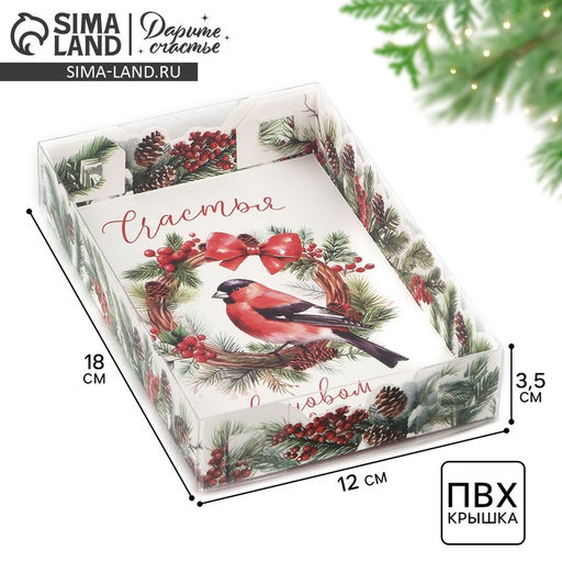 Цена за 5 шт. Коробка для макарун «Счастье в Новом Году!», 18×12×3.5 см