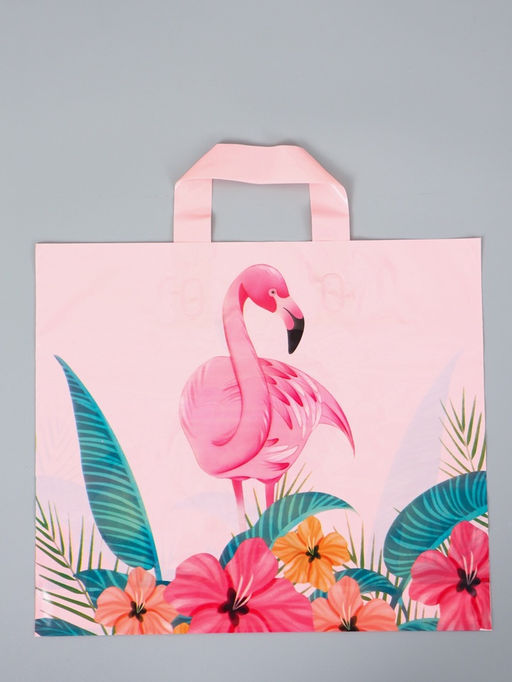 • Цена за 50 шт. Пакет с петлевой ручкой "Фламинго" 35 х 30 х 8, см, 60 мкм
