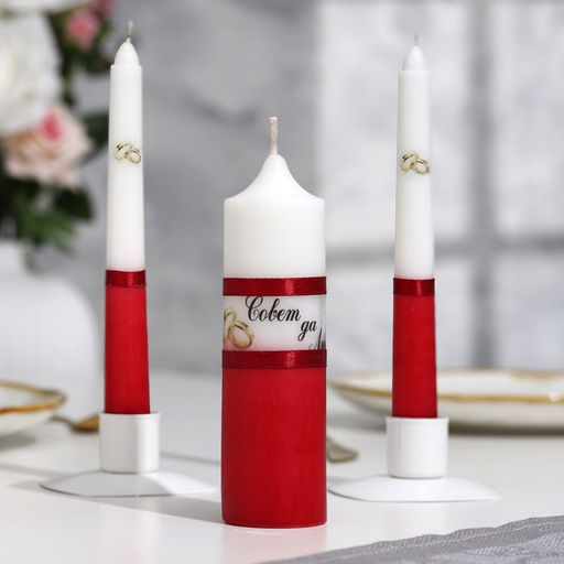 • Набор свечей свадебных «Совет да любовь», бордо: родительские 1.8×17.5 см; очаг 4×13.5 см