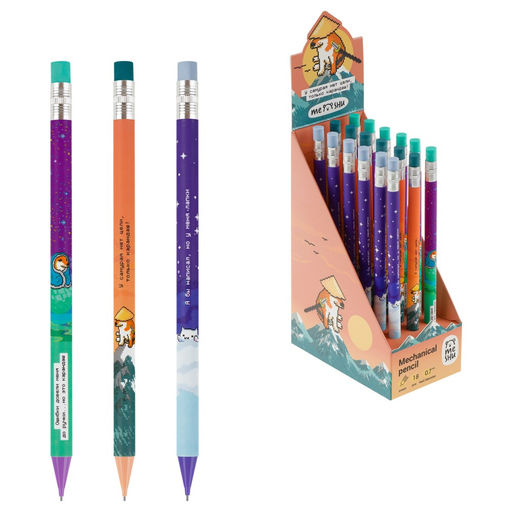 • Цена за 3 шт. Карандаш автомат. MESHU "Pixel" 0.7мм (MS_67222) с ластиком, корпус с рисунком ассорти.