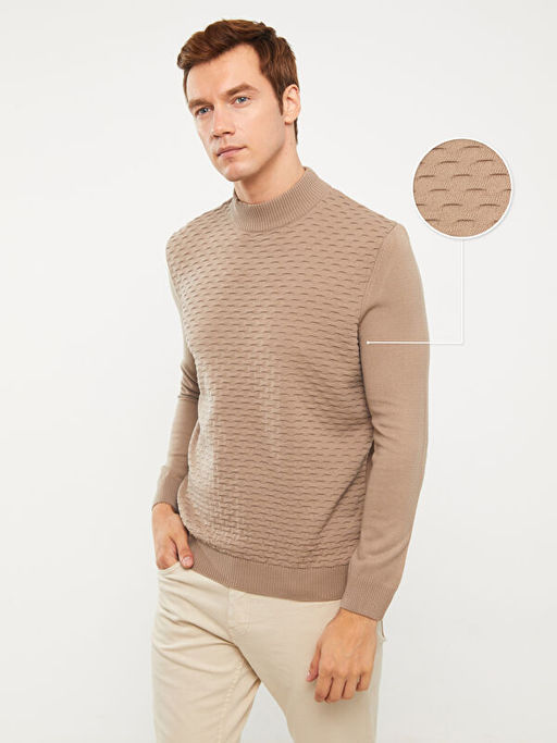 Yar?m Bal?k?? Yaka Uzun Kollu Erkek Triko Kazak