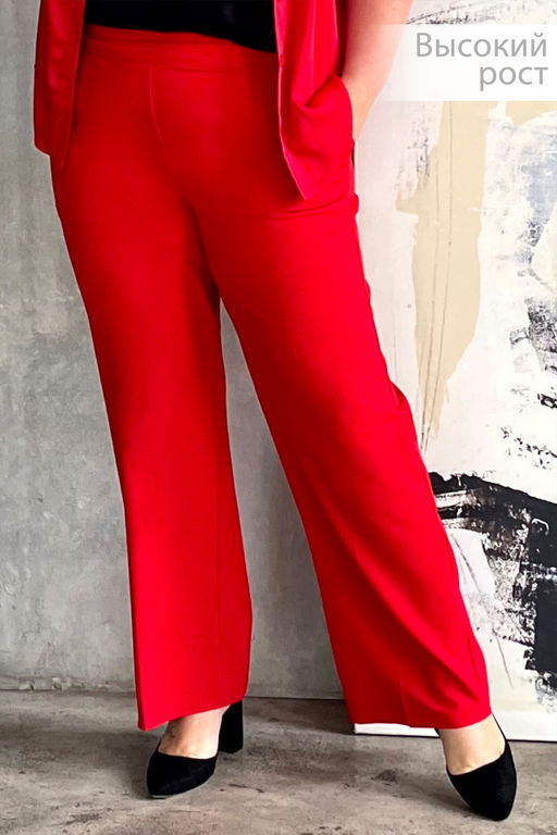 Брюки классического кроя отлично сидят за счет комфортной резинки на поясе по спинке. По бокам практичные карманы. Модель привлекает внимание широким клешем книзу. Брюки прекрасно подойдут для комбинирования с водолазками, свитерами, блузками,  рубашками и жакетами. Эти модные брюки станут идеальным вариантом для создания стильного образа.