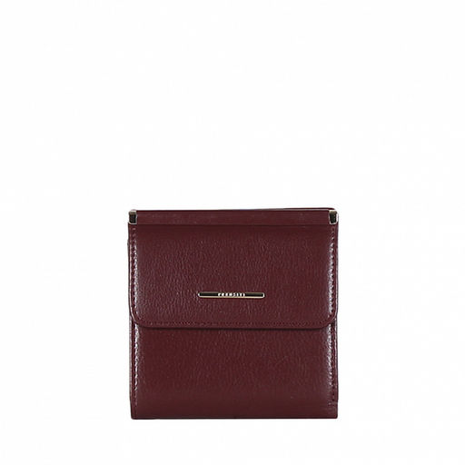Модель раскладывается пополам и закрывается на кнопку, на передней стенке отдел на кнопке для монет. На развороте имеет два отдела для купюр, два открытых кармана и три кармана-прорезей для кредитных карт.­