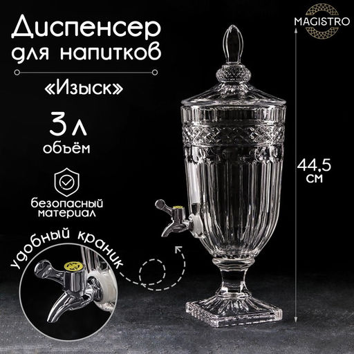Диспенсер для напитков Magistro «Изыск», 3 л, 17×44.5 см, стекло