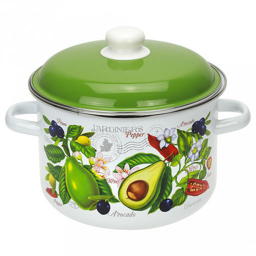 • "Авокадо" Кастрюля эмалированная 4л, д22см, h13см, цилиндрическая форма, металлическая крышка, белый (Россия)
