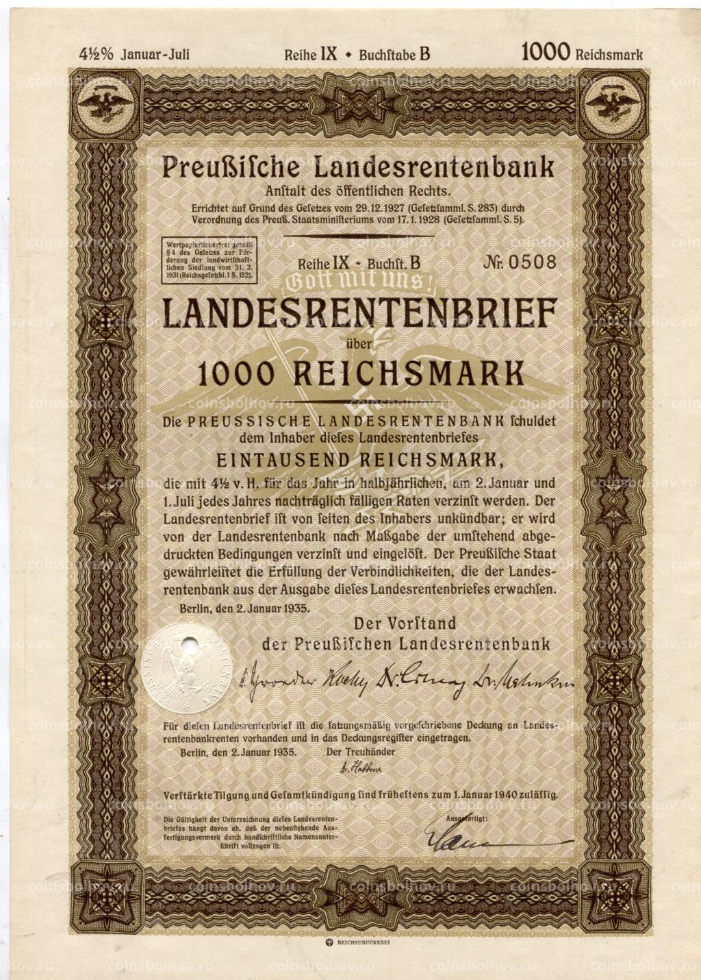 • Облигация 4,5% 1000 рейхсмарок 1935 года Германия