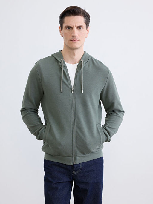 • Kap??onlu Erkek Fermuarl? Sweatshirt