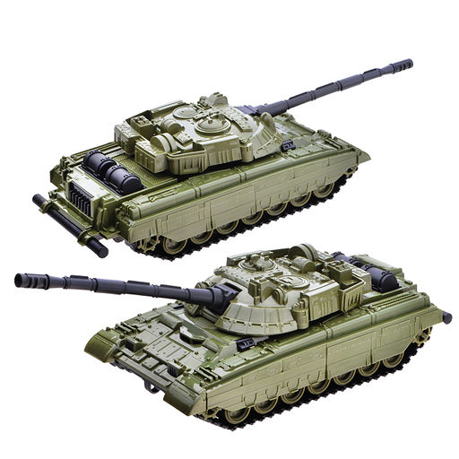 Классический танк, незаменимый в баталиях, оснащен вращающейся башней и пушкой, которая поднимается и опускается.