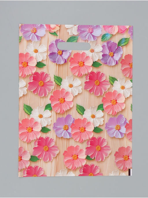 • Цена за 20 шт. Подарочный пакет, полиэтиленовый, с вырубной ручкой, Цветы, 30 х 40 см