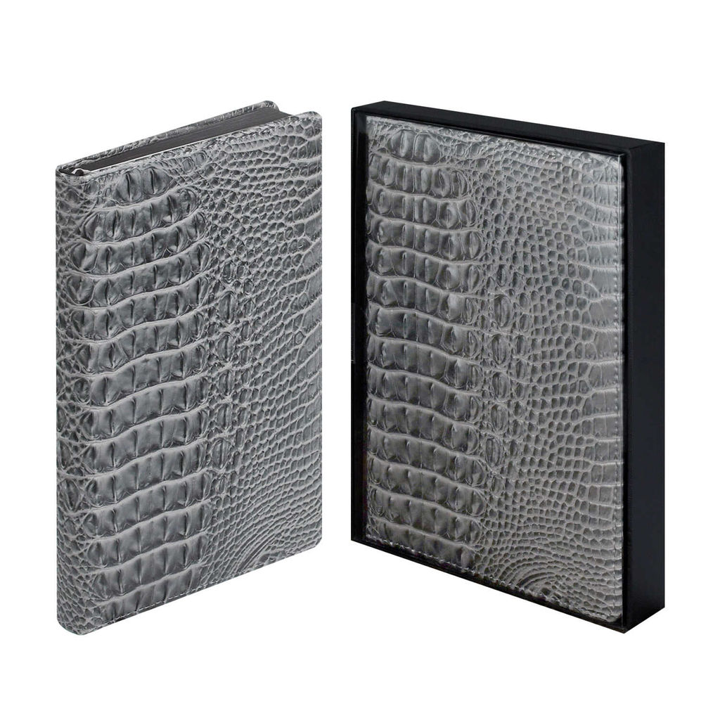 Ежедневник недатированный ESCALADA, А5+, 160 л., арт. 70571/ 10 АЛЛИГАТОР СЕРЫЙ (кожзам: 175x245 мм, твёрдый переплёт с поролоном, материал обложки: искусственная кожа "Аллигатор"; способ крепления блока: ниткошвейный; вн. блок: 160 л., кремовый офсет 80 г/м?, печать в две краски (линия), справочный материал: есть; перфорация углов блока: нет; отделка среза: окрашивание пантоном; закладка/-и: два ляссе, каптал: есть; форзац: печать пантоном, тиснение фольгой, персонализация возможна: нет; индивидуальная упаковка: промостикер + подарочная картонная коробка с ПВХ-крышкой + ПЭТ-пакет)