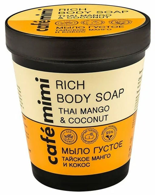 cafe mimi Тайское Манго и Кокос Мыло густое -Массажными движениями нанести небольшое количество мыла на кожу, вспенить и смыть водой.