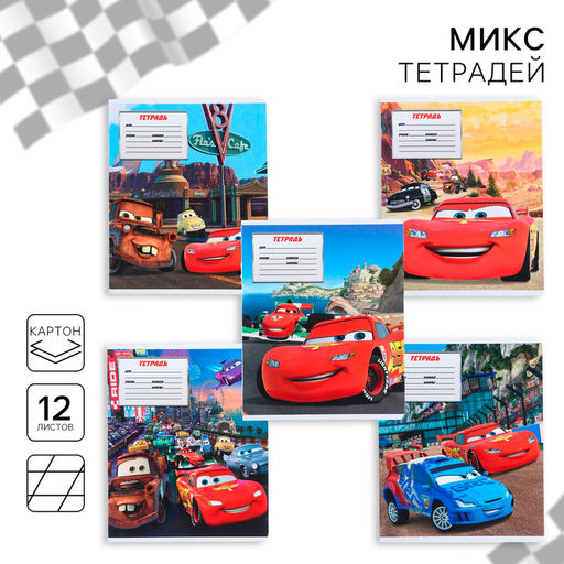 • Цена за 20 шт. Тетрадь в косую линейку 12 листов, 5 видов МИКС, обложка мелованный картон, «Тачки»