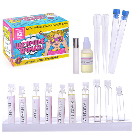 • При помощи этого восхитительного набора ваш ребенок сможет самостоятельно в домашних условиях приготовить свои собственные духи! В комплекте содержится множество эфирных масел, смешивая которые, можно получить 3 вида классических ароматов и более сотни новых изумительных, которые понравятся не только детям, но и взрослым.