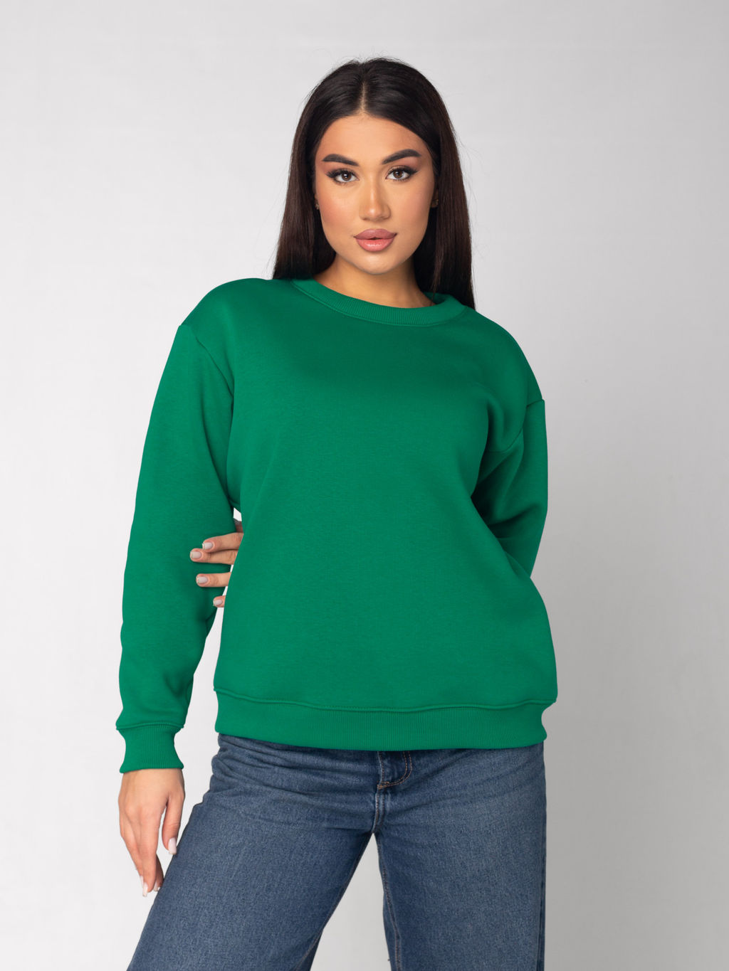 • Толстовка женская футер начес 3-х нитка пенье "ШАЙН" ЗЕЛЕНЬ
