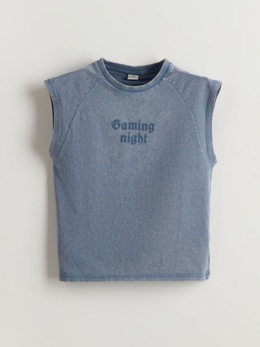 • Bisiklet Yaka Bask?l? Erkek ?ocuk Atlet