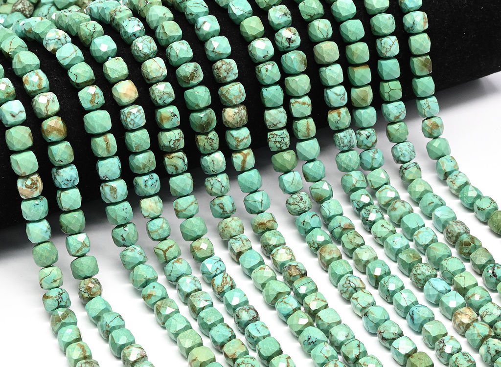 • Бусины из бирюзы иранской кубик гр.7мм, 38см, 55 бусин Радуга камня
