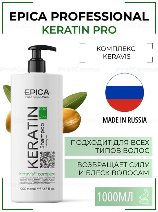 • EPICA Шампунь "KERATIN PRO", 1000мл.для реконструкции и глубокого восстановления волос