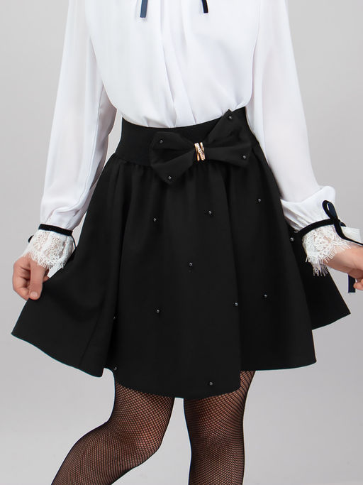 Эффектная юбка - солнце, с широким, эластичным поясом, для девочки. Модель украшена перламутровыми бусинами, и прелестным бантиком. Прочный, износоустойчивый материал позволит надолго сохранить форму и привлекательный вид. Идеально вольется в красивый, школьный гардероб.