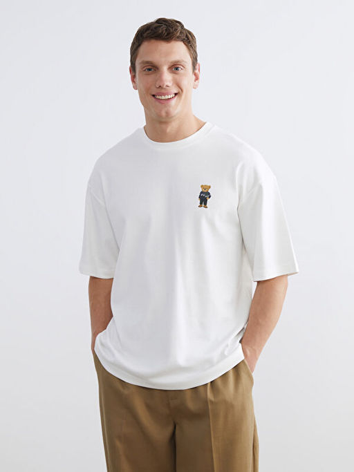 Bisiklet Yaka Ay? Teddy Bask?l? Erkek Ti??rt