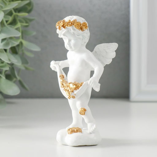 Фигурка полистоун Белоснежный ангел рассыпает золотые розочки, 6.5?4?11 см