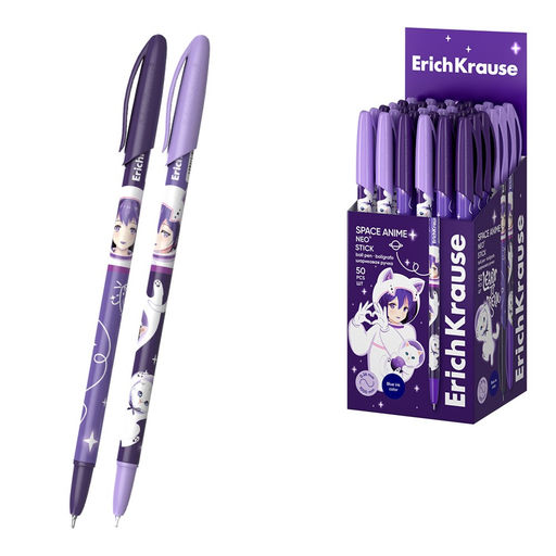 Цена за 3 шт. Ручка шар. ErichKrause "Super Glide Technology Space Anime" (61014) синяя, 0.7мм, корпус с рисунком, игольчатый стержень, одноразовая