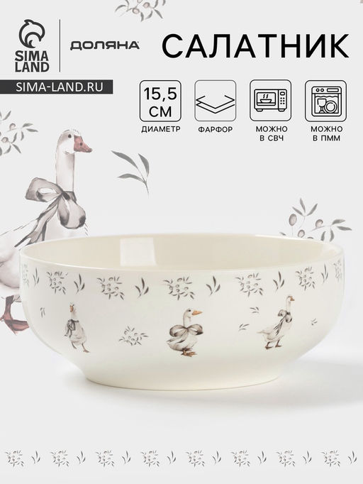 • Салатник Доляна «Гуси», фарфор, 650 мл, 15.5×6 см, белый