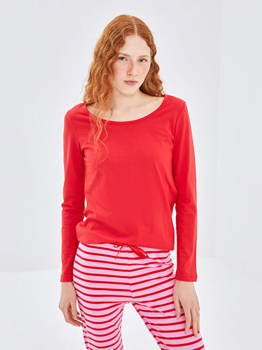 Bisiklet Yaka ?izgili Kad?n Pijama Tak?m?