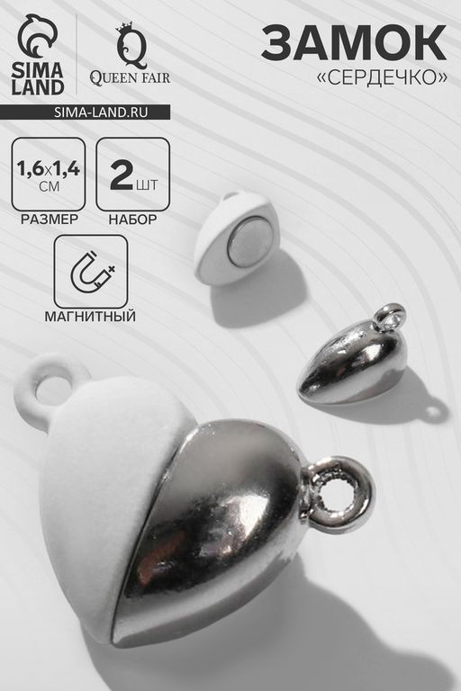 Замок магнитный Сердечко это нежный и стильный аксессуар для создания романтичных украшений. В наборе 2 замка серебристо-белого цвета, выполненные в виде очаровательных сердечек. Эти магнитные замки идеально подойдут для ожерелий, браслетов и других украшений, придавая им элегантность и утончённость. Магнитные замки Сердечко обеспечивают лёгкость в использовании благодаря магнитной фиксации, которая удобно открывается и закрывается. Серебристо-белый цвет замков гармонично сочетается с различными материалами, добавляя изделиям свежести и изысканности. Этот набор замков магнитных Сердечко прекрасный выбор для мастеров, желающих создать романтические и стильные украшения. Подчеркните красоту своих изделий с этим красивым и функциональным аксессуаром! Комплектация * Замок 2 шт. Дополнительно Как ухаживать за изделием? * беречь от косметических парфюмерных средств; * избегать контакта с жидкостями и бытовой химией; * снимать перед принятием душа/ванны и перед занятиями спортом; * беречь от воздействия прямых солнечных лучей; * хранить в мягких мешочках, футлярах или на специальных подставках для украшений; * беречь от механических повреждений и падений.