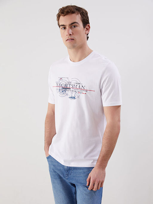 • Bisiklet Yaka K?sa Kollu Bask?l? Penye Erkek Ti??rt