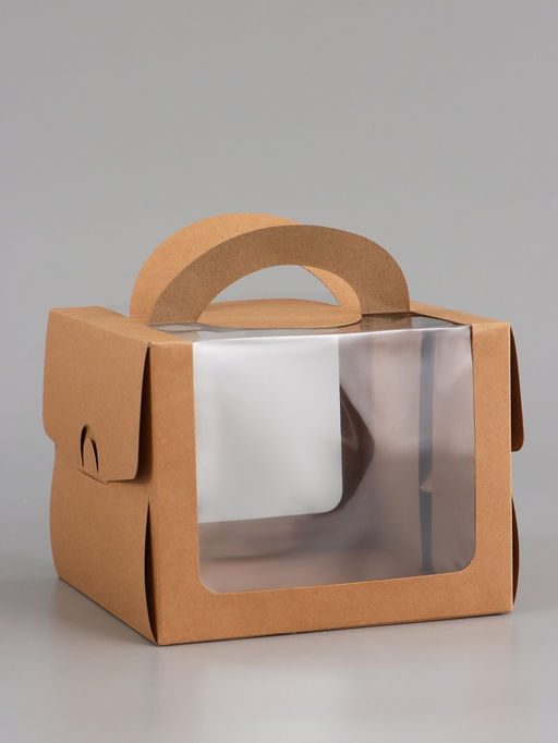 • Коробка под бенто-торт с окном, крафт, 16×16×12.5 см
