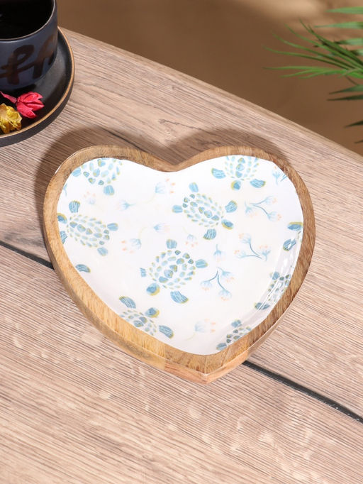 Блюдо в форме сердца Черепаха и цветы, 20.5?20?2.3 см, дерево манго