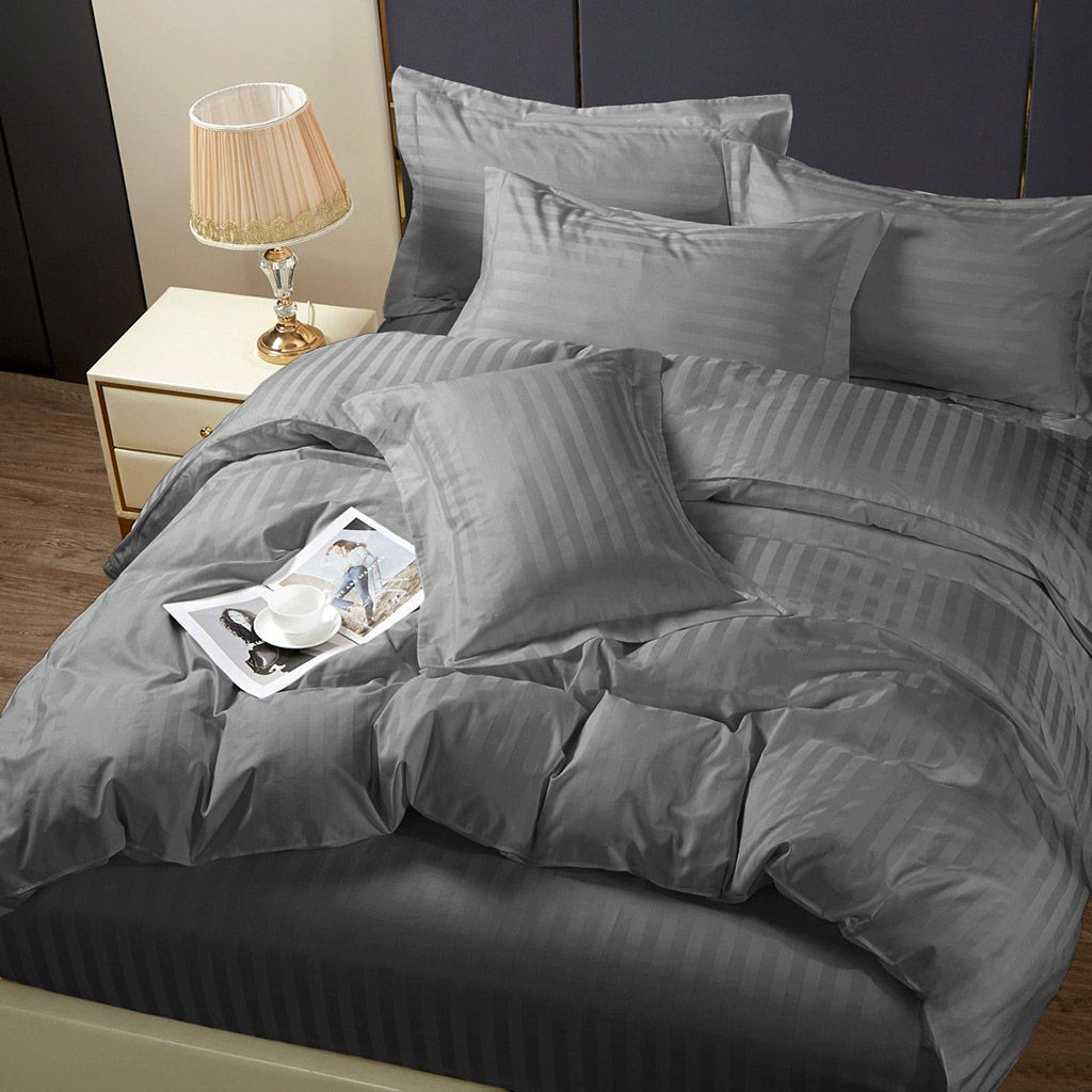 Постельное белье, комплект 1,5 спальный "Темно-серый", 4 предмета: пододеяльник 145х215см, простыня 150х220см, 2 наволочки 70х70см с клапаном-запахом, микрофибра-страйп 90г/м2, полиэстер 100%, упаковка "классическая" ПВХ 32х41см, "Домашняя мода" (Рос