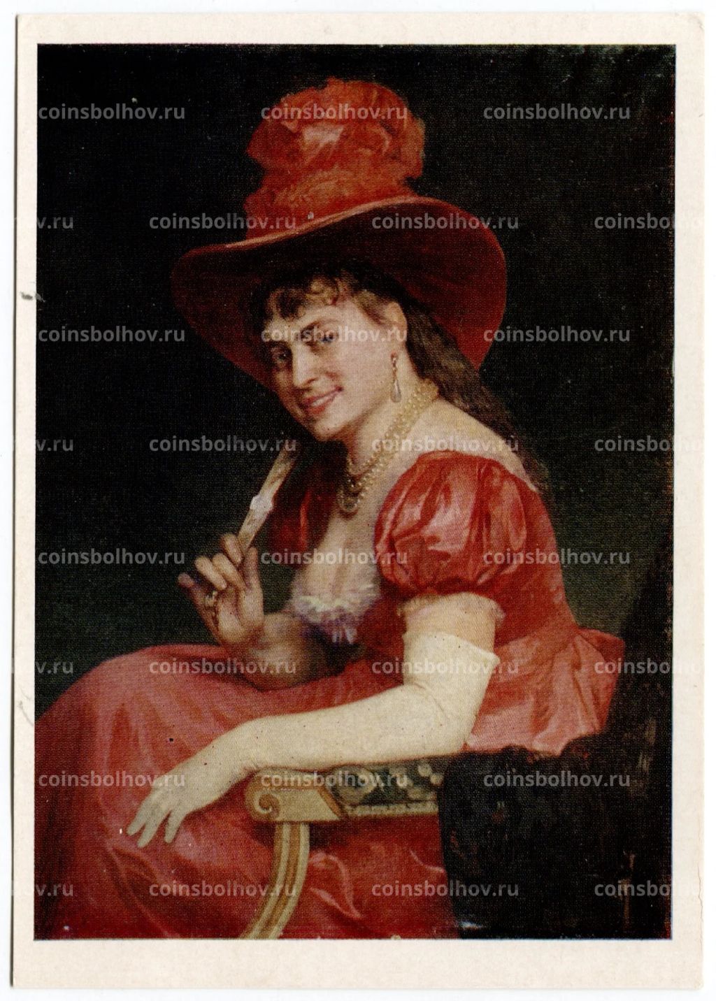 Открытка живопись Ю.Я. Леман Парижанка. Дама в красном