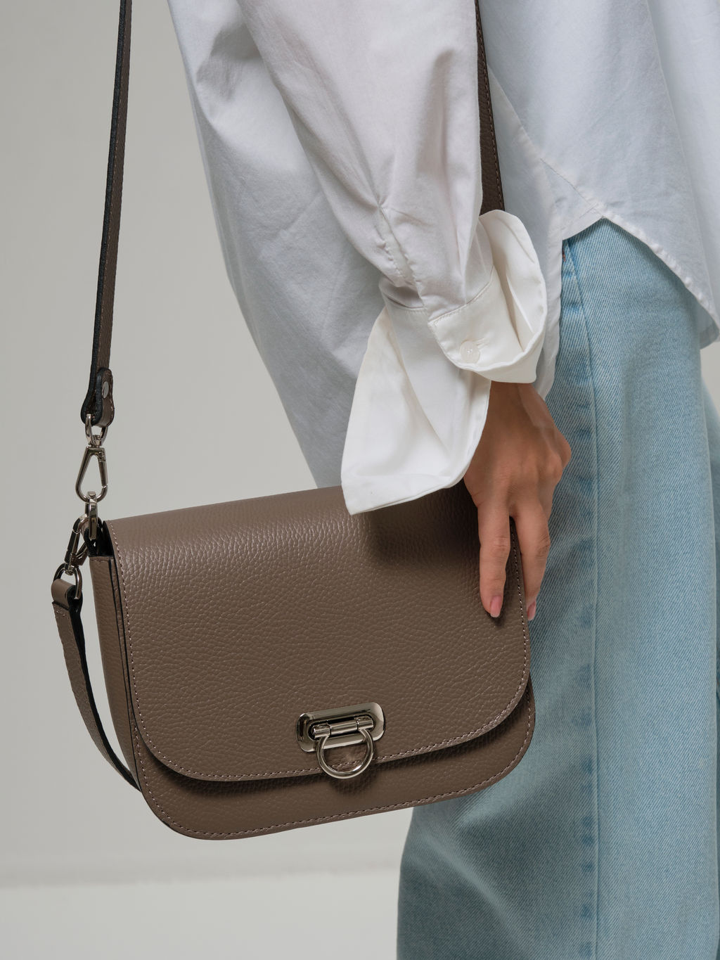 Женская сумка из натуральной зернистой кожи Azaro 30741 тауп станет отличным дополнением вашего образа и надежным аксессуаром для повседневной жизни. Изготовленная из натуральной кожи, она обладает высокой прочностью и долговечностью. Эта женская сумка кросс боди выполнена в аккуратном и элегантном дизайне, что делает её универсальным вариантом как для ежедневного использования, так и для особых случаев.