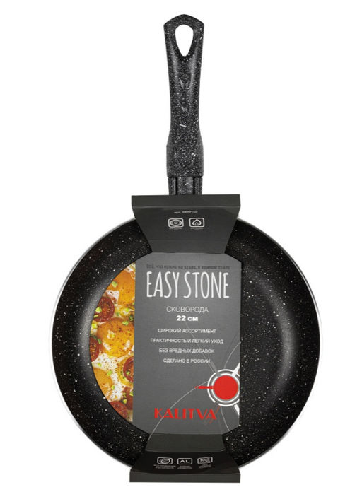 Сковорода для повседневного использования из новой линейки Easy Stone это комфортное и быстрое приготовление любимых блюд, трендовый черный цвет с эффектом камня и удобство ежедневного использования.