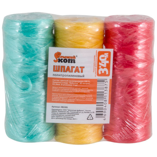 • Цена за 2 шт. Шпагат полипропиленовый д=1,0мм "Трио" бобинки 3*40м (082285)