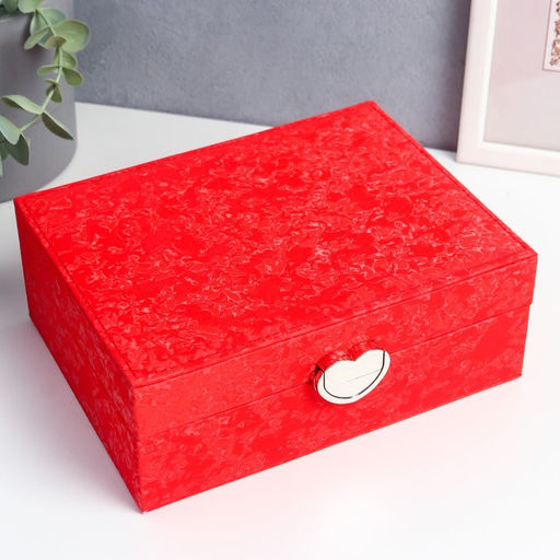 • Шкатулка для украшений «Под бархат», под часы 2 отделения, с замком, искусственная кожа, алая, 8×15.5×20.5 см