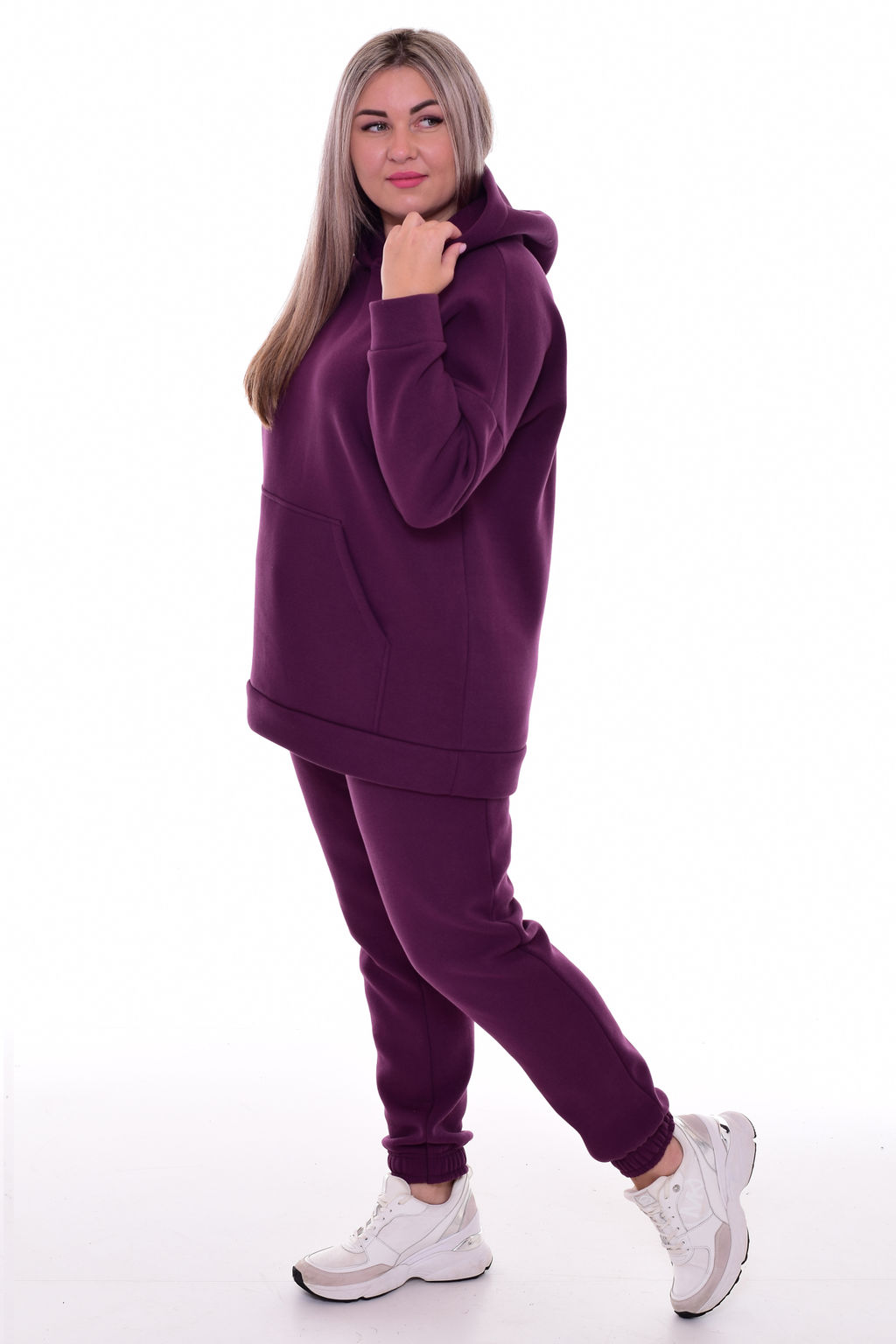 Костюм женский из теплого футера с начесом. Худи свободного кроя, удлиненная, с объемным капюшоном, карманом "кенгуру" на поясе, рукав со спущенной проймой длинный на манжете. Брюки-джоггеры свободного кроя с двумя боковыми карманами, пояс на широкой резинке со шнурком, низ брюк на широкой резинке. Длина толстовки по спинке: 42-71 см, 44-72 см, 46-73 см, 48-74 см, 50-75 см, 52-76 см, 54-77 см, 56-78 см, 58-78 см, 60-79 см. Длина брюк по боковому шву: 42-102 см, 44-103 см, 46-104 см, 48-105 см, 50-105 см, 52-105 см, 54-106 см, 56-106 см, 58-106 см, 60-106 см. Длина брюк по шаговому шву: 42-77 см, 44-77 см, 48-77 см, 50-77 см, 52-77 см, 54-77 см, 56-77 см, 58-77 см, 60-77 см.