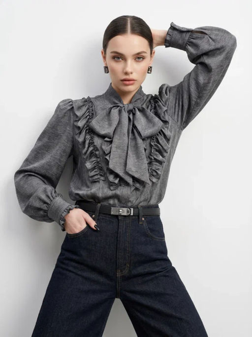 • Блузка с рюшами и воротником-завязка OD-988-1 графит