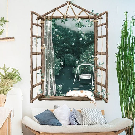• Наклейка пластик интерьерная цветная "Окно в сад" 30х80 см набор 2 листа