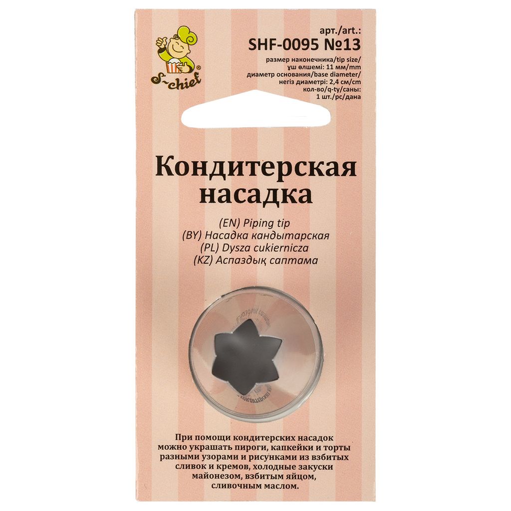 S-CHIEF SHF-0095 Кондитерская насадка d основания 24 мм нержавеющая сталь 1 шт № 13 открытая звезда
