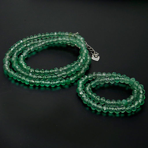• Набор бусы и браслет из камня Нефрит с огранкой