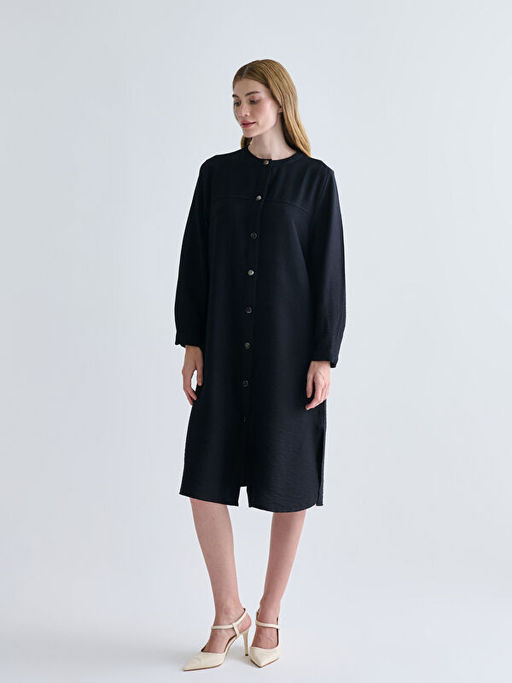 Bisiklet Yaka Keten G?r?n?ml? Elbise