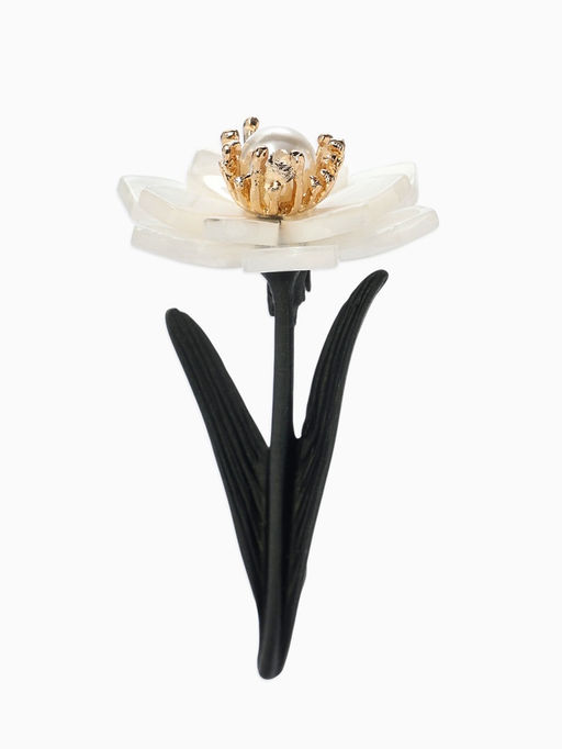 • Брошь «Цветок» нежный, жемчуг, цвет бело-зелёный в золоте