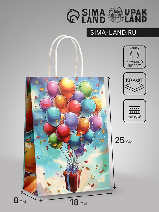 • Цена за 2 шт. Пакет подарочный крафт «Воздушные шарики», 18×8×25 см